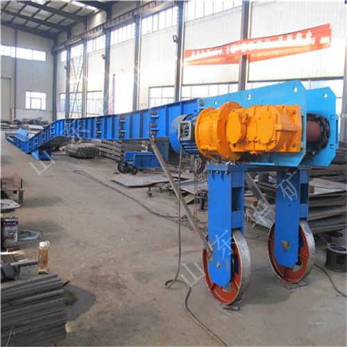 刮板轉(zhuǎn)載機(jī)是一種可以縱向整體移動(dòng)的重型刮板輸送機(jī),其長度較小,便于隨著采煤工作面的推進(jìn)和帶式輸送機(jī)的收縮而整體移動(dòng)。轉(zhuǎn)載機(jī)安裝在采煤工作面運(yùn)輸巷中,與可伸縮帶式輸送機(jī)配套使用,同工作面刮板輸送機(jī)銜接配合順槽用刮板轉(zhuǎn)載機(jī)有軋制中部槽組裝式和整體組焊箱式結(jié)構(gòu)兩種,主要用于綜合機(jī)械化采煤,在長壁工作面刮板輸送機(jī)和順槽可伸縮皮帶機(jī)之間起轉(zhuǎn)載輸送煤炭的作用。使用轉(zhuǎn)載機(jī)后,可以避免順槽可伸縮皮帶機(jī)機(jī)尾的頻繁移動(dòng),從而保證工作面生產(chǎn)的順利進(jìn)行。刮板轉(zhuǎn)載機(jī)主要應(yīng)用于高產(chǎn)、高效綜合機(jī)械化工作面順槽轉(zhuǎn)載輸送煤炭。它是由中部槽、鏈條、刮板及牽引系統(tǒng)組成。