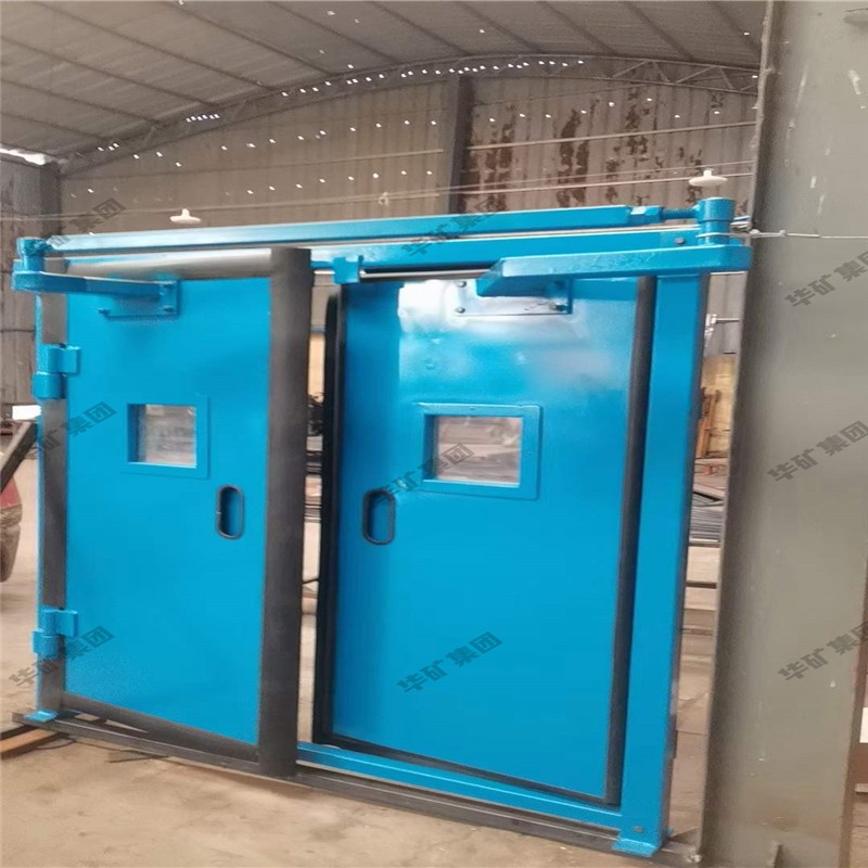 礦用無壓風(fēng)門主要用于礦山井下進回風(fēng)巷和主要進回風(fēng)巷之間每個聯(lián)絡(luò)巷中。雙扇無壓風(fēng)門運用聯(lián)桿平衡機構(gòu),開啟力小,不需再設(shè)反向風(fēng)門。